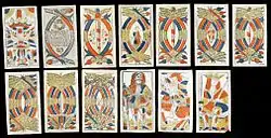 - ^ Dummett, Michael (1990–1991). "A Survey of 'Archaic' Italian Cards". The Playing-Card. 19 (2, 4): 43–51, 128–131.
