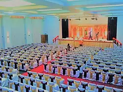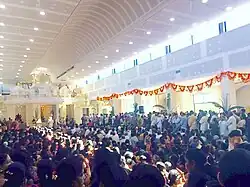 The Sydney Durga Temple Wedding Hall is an 800 seating capacity auditorium that hosts cultural performances, weddings, functions, conferences, musical and dance performances, celebrations and the temple's annual fundraising dinner. The Devasthanam constructed the Auditorium having spent more than a million dollars on the building. The auditorium provides projectors, chairs and tables, table swags, plates, lighting, backdrops and more. The temple provides facilities such as a Men's and Women's restrooms, two rooms located at the sides of the stage, a small kitchenette, a sound room and two big rooms often used as dressing rooms for the bride. Bookings, packages and deals can be made by calling the temple. This is the first Hindu community hall to be within a Temple Complex in Australia