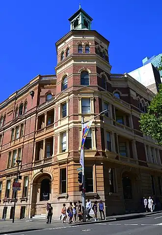 The Sydney Trades Hall, also known as the Trades Hall Building and the Trade Unions Hall, is a heritage-listed trade union building located at 4-10 Goulburn Street in the Sydney central business district, in the City of Sydney local government area of New South Wales, Australia. It was designed by John Smedley, with later additions by Spain and Cosh and Minnett, and was developed from 1888 to 1916. The building was built and owned by the Trades Hall Association, the original trade union affiliates who built the hall in 1888, and is now owned by Unions NSW. The property was added to the New South Wales State Heritage Register on 2 April 1999.[1]