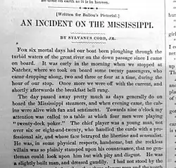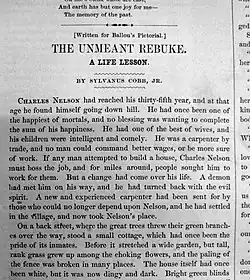 He began writing stories around 1850. Frederick Gleason published Cobb's first story, "The Prophet of the Bohmer Wald: a Tale of the Time of Joseph II, Emperor of Germany" in The Flag of Our Union. His work was also published in Gleason's Pictorial beginning in 1851.[3]
