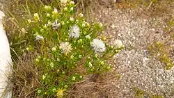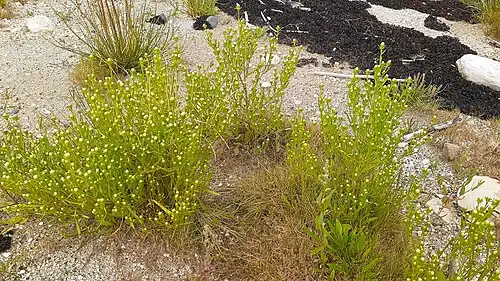 Symphyotrichum ciliatum is a species of flowering plant in the family Asteraceae native to North America and eastern Eurasia. Commonly known as rayless annual aster and rayless alkali aster, it is an annual, herbaceous plant that may reach over 70 centimeters (2 feet 4 inches) in height. Each flower head has many whitish then pink disk florets and no ray florets ("rayless").[3]