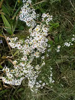 Symphyotrichum racemosum (formerly Aster racemosus) is a species of flowering plant native to parts of the United States and introduced in Canada.[3] It is known as smooth white oldfield aster and small white aster.[4] It is a perennial, herbaceous plant in the family Asteraceae. It is a late-summer and fall blooming flower.[3]