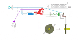 Unlike the Schneider patent design, Saulnier's device was actually built, and may be considered the first practical synchronization gear to be tested.[26] For the first time, the cam producing the to-and-fro movement conveying firing impulses to the gun is situated at the engine (driven in this case by the same spindle that operated the oil pump and the tachometer) and the impulses themselves are transmitted by a reciprocating rod rather than Schneider's rotating shaft. The idea of literally "interrupting" the firing of the gun gives way (probably as the result of experience) to the principle of pulling the trigger for each successive shot, like the action of a semi-automatic weapon.[27]