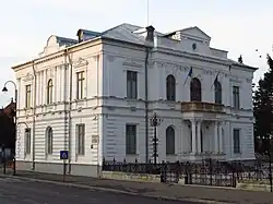 The building stands as one of the significant architectural landmarks of the city from the late 19th century. Constructed between 1892 and 1894 under the stewardship of Italian entrepreneur Giovanni Baltasare Vignosa, it originally served as the seat of the Dâmbovița County Prefecture. The edifice employs a classical architectural style infused with Baroque influences, complemented by an interior adorned with murals. The artwork becomes increasingly ornate in the successive levels, culminating in the highly decorated "Sălii de Consiliu" (Council Room). The mural paintings adorning this central room exhibit motifs inspired by Neoclassicism, botanical elements, and floral designs, strongly influenced by Italian Baroque aesthetics. Above each of the five entrances to the room, there are painted landscapes featuring landmarks of Târgoviște, such as the Domnească Court and the New Metropolis, as envisioned by the Italian painter Giovanni Battista del Basso in 1894–1895. A unique depiction of the Dâmbovița County crest tops the central doorway. In the 1970s, following the relocation of the County Prefecture to a larger and more modern facility, the building served as the Adult Section of the County Library until the late 1980s. Subsequently, it underwent extensive renovations to combat advanced deterioration, culminating in its reopening to the public in 2009 as an art museum.
