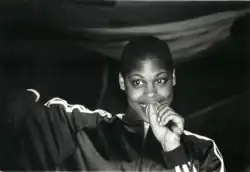 T-Love, born as Taura Taylor Mendoza in Los Angeles, California, grew up in South Central Los Angeles with Dr. Dre.[1] She began her career producing demos for Eazy-E and Jerry Heller's Ruthless Records and later recorded under the name Urban Prop at Capitol Records.[2] At the age of 15, she made her debut on LA radio station KDAY.[1] Simultaneously, she became a journalist, writing for magazines such as Vibe, URB, Hip Hop Connection, and The Source, and contributed to books such as It's Not About a Salary and Girl Power.[1][3] During her journalism career, she interviewed film director Spike Jonze and musicians such as Beastie Boys, Run-DMC, Kool Keith, Snoop Dogg, Erykah Badu, Ultramagnetic MCs.[1][3]