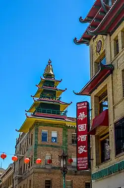 Sing Fat (left) and Sing Chong (right) buildings which set the trend for post-earthquake architecture in Chinatown