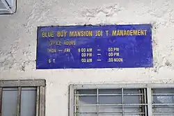 Blue Boy Mansion is a seven-storey residential building and was built in 1962, located in Jalan Tong Shin, Kuala Lumpur.[5] Funded by Hong Kong investor and built by Architect T.Y.Lee & Sons. It was built for mostly wealthy Chinese clients based in Kuala Lumpur. It is a resolutely modern apartment block. It consists of two rectangular courtyards, with shop lots on the ground floor perimeter, and a roof terrace. All apartments have cross ventilation, with views to the outside and to the courtyards. Perched atop a hill in Bukit Bintang, the upper floors enjoy panoramic views of the city. The architect's offices were located in the structure. The architect ran his office from the prestigious address. His later client, the Magnum Corporation, were also tenants.