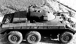 The T17 armored car, sometimes referred to as the M5 medium armored car and by the British as the Deerhound, was an American six-wheeled armored car produced during the Second World War.