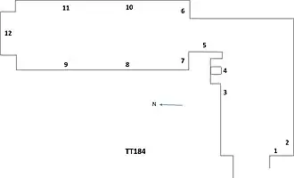 The Theban tomb TT184 is the burial place of Nefermenu, an ancient Egyptian official, Mayor of Thebes and Royal Scribe during the reign of Ramesses II. The tomb is part of the Theban Necropolis and located on the El-Khokha hillock on the west bank of the Nile, opposite to Luxor.[2]