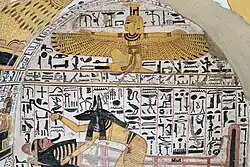 ![]() Anubis with the tool for the opening of the mouth ceremony (below) of Nebenmaat and the winged goddess Nephthys (above) | |