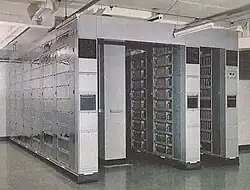 The Plessey 5005 was made up of routers and distributors. A distributor performed subscriber concentration and could serve up to 500 lines. A router made up the core of the exchange for switching traffic between distributors or between a distributor and an external junction/trunk. The exchange at Broughton was initially dimensioned to serve 2,000 lines and therefore had four distributors and one router. A 5005 could serve up to 100,000 lines, but no inland exchanges of this size were used in the UK.