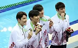 Park Tae-hwan (Korean박태환; Hanja朴泰桓, Korean pronunciation: [pak̚.tʰɛ̝.ɦwan]; born September 27, 1989) is a South Korean retired competitive swimmer who is an Olympic gold medalist and world champion. He has four Olympic medals, five world titles, and 20 Asian Games medals. He won a gold medal in the 400-meter freestyle and a silver in the 200-meter freestyle events at the 2008 Summer Olympics. He also won two silver medals at the 2012 Summer Olympics in the 200- and 400-meter freestyle. He is the first Asian swimmer to claim a gold medal in the men's 400-meter freestyle, and the first-ever South Korean swimmer to win any Olympic medal in swimming. He also holds 3 Asian Records, all in Men's Freestyle. He is best known for his impressive range and versatility, as he is able to compete at international level in 100-, 200-, 400- and 1,500-meter freestyle.
