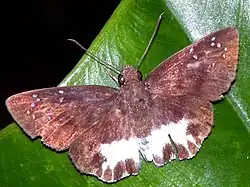 Tagiades menaka, commonly known as the spotted snow flat or the dark-edged snow flat, is a species of spread-winged skipper butterflies. It contains three subspecies.[1]