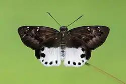 The Tagiadini are a tribe of skipper butterflies in the family Hesperiidae. Many of its genera were of uncertain relationships for long, and delimitation of the Tagiadini versus the Celaenorrhinini was quite disputed at times. The species of this tribe are found in mostly tropical regions of Africa, Asia and Australia.[1]