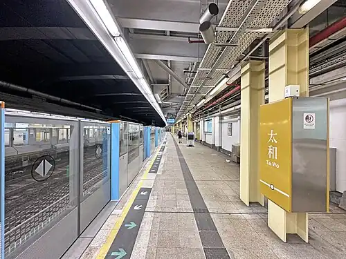 ![]() Platform 2 of Tai Wo station | ||||||||||||||||||||||||||||||||||||||||||||||||||||||||||||||||||||||