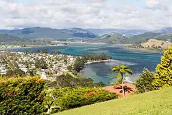 The Tairua River is a river located on the east coast of the Coromandel Peninsula in the North Island of New Zealand. It flows north and then northeast for a total of 35 kilometers (22 miles) from its source in the Coromandel Range, west of Whangamatā, passing through the town of Hikuai before emptying into the Tairua Harbour, which opens into the Pacific Ocean at Tairua on the peninsula's east coast. The small Shoe Island lies directly opposite the river's mouth, 2 kilometers (1.2 miles) out into the Pacific.