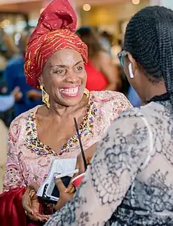 On 1 October 2006, she received a national award of Officer of the Order of the Niger, decorated by Chief Olusegun Obasanjo, president of the Federal Republic of Nigeria.[6][16][17] In February 2008, at an All-Star Gala held at Theatre Royal Stratford East on the 10th anniversary of Tiata Fahodzi, she was honoured as a leader of British-African theatre, alongside Dotun Adebayo and Yemi Ajibade.[18]