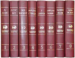 The Tajik Soviet Encyclopedia (Tajik: Энциклопедияи советии тоҷик) is the first universal encyclopedia in the Tajik language, published in Dushanbe from 1978 to 1988 in eight volumes. An additional volume, Tajik SSR, was published in both Tajik and Russian.