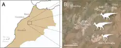- ^ Longrich, Nicholas R.; Isasmendi, Erik; Perada-Suberbiola, Xabier; Jalil, Nour-Eddine (2023). "New fossils of Abelisauridae (Dinosauria: Theropoda) from the upper Maastrichtian of Morocco, North Africa". Cretaceous Research. 152: 105677. Bibcode:2023CrRes.15205677L. doi:10.1016/j.cretres.2023.105677. S2CID 261090591.