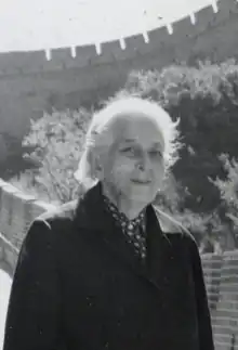 Gerlach went to Shanghai in 1926 to organize a YWCA office.[2] In April 1927 she met and befriended the YWCA secretary Maud Russell, who had been forced to leave Wuchang due to the civil war.[3] That year Gerlach joined a political study group in Shanghai with progressive foreigners such as Rewi Alley,[a] Agnes Smedley and George Hatem (Ma Haide).[4] Other members of the study group, which usually met in Alley's house, included YWCA secretaries Maud Russell, Lily Haass and Deng Yuzhi.[5][b]