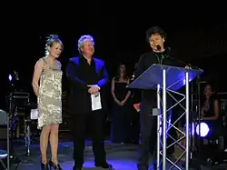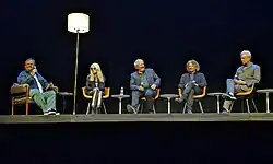 In September 2023, Stop Making Sense was re-released in IMAX with remastered sound and picture to coincide with the film's 40th anniversary.[58] The band members reunited that month for a Q&A at the Toronto International Film Festival, following limited showings of the film in theaters,[53][59] and gave subsequent interviews together to promote the re-release.[60] With regard to the possibility of a reunion tour, Harrison told the Los Angeles Times: "Right now, we're concentrating on Stop Making Sense and how much fun we're having revisiting the film. We're living in the moment, so that's all we're thinking about."[61] In January 2024, Billboard reported that Talking Heads had turned down an $80 million offer for a reunion tour, which would have included a performance at Coachella.[62]