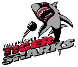 In 1994, the Huntsville franchise relocated to Tallahassee and became the Tiger Sharks. The team adopted a new color scheme of black and gray, with white as an official accent color. Terry Christensen was named head coach of the Tiger Sharks, a position he held for five of the team's seven seasons in Tallahassee.[1] The Tiger Sharks qualified for the playoffs in each of its first three seasons. Christensen left the organization to coach the Miami Matadors hockey club in 1998. At the start of the 1998–99 ECHL season, the color scheme was changed to red, white, and black. Jeff Brubaker, a former NHL enforcer who won the ECHL's Riley Cup as the coach of the Greensboro Monarchs, coached the team during the 1998–99 season. Following the folding of the Miami Matadors after one season, Christensen returned to coach the Tiger Sharks again for the 1999–2000 season. During the 2000–01 season, the Tiger Sharks were coached by Gerry Fleming, a former enforcer who spent ten years with the Fredericton Canadiens as both a player and as an assistant coach. During the 2000–01 season, the team was in position to qualify for the playoffs after missing in the previous three seasons, but was penalized $50,000 and 15 points in the standings for violating the team salary cap and making improper payments to NHL and AHL teams to get assigned players.[2] After the conclusion of the 2000–01 season, the franchise was relocated to Macon, Georgia.[3]
