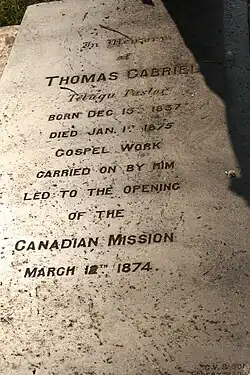 Gabriel died on 1 January 1875[16] uttering his last words, Jesus is precious.[16]