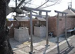 After the funeral, Wakayama Electric Railway President Mitsunobu Kojima and other executives went to the area by Kishi River where Tama was born and selected stones to build her memorial.[21] Tama's name was written in calligraphy by President Kojima and carved by a stonemason. The plaque and a bronze statue of Tama are located in a small Shinto shrine, called Tama Jinja, next to the station.