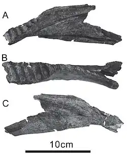 - ^ Mo, Jinyou; Ma, Feimin; Yu, Yilun; Xu, Xing (2022-12-09). "A New Titanosauriform Sauropod with An Unusual Tail from the Lower Cretaceous of Northeastern China". Cretaceous Research. 144 105449. doi:10.1016/j.cretres.2022.105449. ISSN 0195-6671. S2CID 254524890.