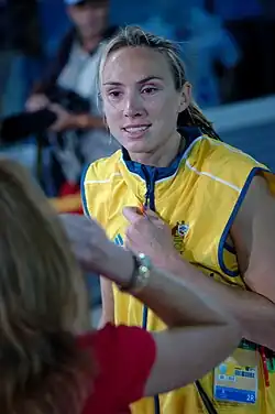 Tamsin Hinchley (née Barnett, born 10 March 1980) is a retired Australian indoor and beach volleyball player. Born in Adelaide, Hinchley was on the Australian indoor squad at the 2000 Summer Olympics. At the 2008 and 2012 Summer Olympics, Hinchley partnered with Natalie Cook in beach volleyball where they finished 5th and 19th, respectively. Hinchley and Cook also partnered on the Swatch FIVB World Tour, and Hinchley was named the World Tour's most improved player in 2007.[1]