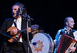 Tangos & Tragédias was a Brazilian comedy musical act created by the musicians and actors Hique Gomez and Nico Nicolaiewsky. The duo performed as characters, musicians from the fictional country of Sbórnia. Gomez played the role of Kraunus Sang (violin and vocal) and Nicolaiewsky played as Maestro Pletskaya (piano, accordion and vocal). They presented from 1984 until 2014, when Nicolaievsky died of acute leukemia.[1]