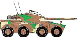 As originally conceived in the early 1990s, the armoured combat vehicle (ACV) was intended to replace the AVGP Cougar for the types of missions that it had been called upon to carry out in operations other than war (OOTW) in Somalia and Bosnia.[6] Such a purchase was seen as part of a two-tier equipping strategy – the wheeled 105 mm-armed ACV and some other lighter-weight equipment for OOTW and a main battle tank (MBT) and related heavier equipment for warfighting.[7]