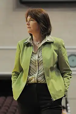 She stayed with the Pioneers for one year before earning her first NCAA Division I head coaching position with the University of San Francisco in 2006.[13] During her four-year stay with the San Francisco Dons women's basketball team, Haave accumulated a 36–86 overall record and four straight seventh-place finishes in the West Coast Conference.[14] This led to her being fired from San Francisco and hired for the Metro State Roadrunners of the Metropolitan State University of Denver.[15] In her first year with the Roadrunners, she helped lead them to their first Rocky Mountain Athletic Conference Championship since 1998[1] and was named the Rocky Mountain Athletic Conference Coach of the Year.[16] Her continued success with the team earned her a renewed contract with the university on May 13, 2013.[17] By January 2015, Haave became the fastest Roadrunner coach to reach 100 wins in the schools history.[18] She eventually tied former coach Darryl Smith for most Roadrunner wins in program history, with a 159–84 record.[5] At the end of that season, where the Roadrunners finished second in the Rocky Mountain conference, Haave was named the Conference's Coach of the Year.[19]