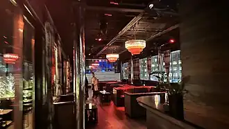 Opened in 2010, Beauty & Essex is a Chris Santos-operated restaurant initially established in New York's Lower East Side and later expanding to Las Vegas' Cosmopolitan in 2017 and the Mohegan Sun resort in 2025.[52] The restaurant features a pawn shop-themed entrance leading into a series of distinct dining rooms and lounges, creating a hidden, speakeasy-style atmosphere. The menu offers a variety of shareable plates and classic cocktails with modern twists, emphasizing social dining.[53]