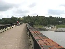 The Tarka Trail was established in 1987 as the Taw/Torridge Country Park using the disused railway line between Barnstaple and Bideford.[3] The railway line was purchased for £515,000 in 1986-87 from British Rail.[3] In 1989, the remainder of the line between Bideford and Meeth was acquired in its entirety by Devon County Council for £1.[3] Conversion of this section to a footpath was enabled by a £60,000 Derelict Land Grant from central government in 1989–90, plus a further £100,000 from Devon County Council and the Countryside Commission in 1990–91.[3] A large proportion of the money was needed to adapt and repair bridges across the River Torridge.[3]