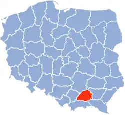 Tarnów Voivodeship (Polish: województwo tarnowskie) was a unit of administrative division and local government in Poland in years 1975–1998, superseded by a much larger Lesser Poland Voivodeship. Its capital city was Tarnów. Located in southeastern part of the country, its area was 4,151 km2. (which was 1.3% of the total area of Poland). In 1975 the population was 577,900, in 1998 it grew to 700,800.[1][2]