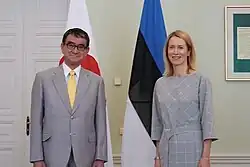 As the foreign minister at the time, he was considered a leading figure behind a trade dispute with South Korea although he was considered friendly with the country. He is also known as a leading figure of cancellation of Aegis ashore project.[20][21][22] At the end of his tenure in September 2019, Kono made over 100 visits to 59 countries.[23]