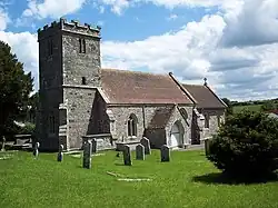 The village's parish church has a 15th-century tower, though the rest of the building was rebuilt in 1852 by Thomas Henry Wyatt.[4] The chancel of the earlier building contained an anchorite's cell.[3] The Bishop of Salisbury Richard Poore is most likely to have been buried at Tarrant Keyneston in accordance with his wishes.[6]
