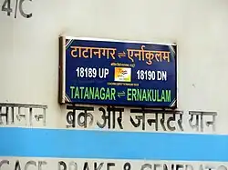 ![]() Train board of Tatanagar-Ernakulam Express | |
