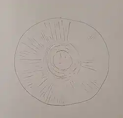 Tateana, and more specifically Tateana inflata, is a very small, discus-like Ediacaran fossil. Its largest diameter is 6.4 mm long and it is radially symmetrical.[1][2] It has very defined and thin radial striations. The main body seemed to be the main portion of the fossil, not showing signs of any limbs or appendages.[2] Tateana has a central zone to where all the radial striations meet into the middle. The striations do not branch off of a main path and there are about 100 of them on the body.[2]