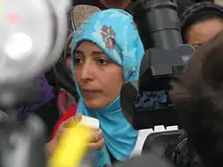 Tawakkol Abdel-Salam Khalid Karman (Arabic: توكل عبد السلام خالد كرمان, romanized: Tawakkul 'Abd us-Salām Khālid Karmān; Turkish: Tevekkül Karman; born 7 February 1979) is a Yemeni journalist, politician, and human rights activist. She co-founded and leads 'Women Journalists Without Chains', a group established in 2005 to advocate for press freedom and human rights. She became the international public face of the 2011 Yemeni uprising that was part of the Arab Spring movement. She was often referred as the 'Iron Woman' and the 'Mother of the Revolution" in Yemen. She is a co-recipient of the 2011 Nobel Peace Prize for "non-violent struggle for the safety of women and for women's rights to full participation in peace-building work". She became the first Yemeni, the first Arab woman, and the second Muslim woman to win a Nobel Prize.[4][5][6][7][8]
