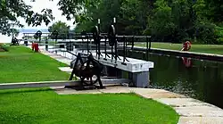 The Tay Canal is the portion of the Tay River in the eastern Ontario region, providing a connection between the town of Perth and the Rideau Canal at Beveridge Bay on Lower Rideau Lake. The canal is 9.8 km (6.1 miles) in length and is operated today by Parks Canada as part of their Rideau Canal operations. At the entrance to the Tay Canal are two locks, Upper and Lower Beveridge Locks, which provide a total lift of 7.6 m (25 ft).