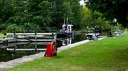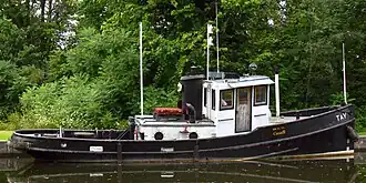 Tugboat Tay, owned by Parks Canada, at Upper Beveridges Lock, Tay Canal