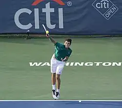 Fritz's American swing began in Washington, where he was the third seed. After beating Alexei Popyrin in straight sets, he retired against Dan Evans in the third round due to the heat, despite having a match point in the second set.[79] At the Canada Masters, he beat Andy Murray and Frances Tiafoe before losing again to Evans in three sets.[80] In Cincinnati, Fritz reached the quarterfinals after beating Sebastián Báez, Nick Kyrgios and sixth seed and world No. 8 Andrey Rublev. He lost to world No. 1 Daniil Medvedev in the quarterfinals.[81] At the US Open he suffered a shocking first round defeat against first time qualifier compatriot Brandon Holt. This was also Holt's first career win on the ATP Tour.[82]