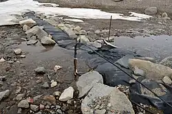 Glaciers and streams descending towards the valley floor from the Asgard Range include Matterhorn Glacier, Lacroix Glacier, Suess Glacier, Canada Glacier and Commonwealth Glacier.[4]