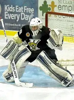 In 1972, the Royals moved, this time to the Windsor Arena in Downtown Windsor. Their rival, the Petrolia Jets, jumped to the Western Ontario Junior B Hockey League, clearing the Royals of their biggest hurdle in the league Junior B playoffs. The Royals would feature future NHL goaltender Rick Heinz during the 1972-73 season.[9] The Royals finished the season in first place with a record of 34 wins, 6 losses, and 2 ties. In the 1973 league semi-final, the Royals faced the last place Sandwich West Thunderbirds of present-day LaSalle. In game one, at the Windsor Arena, the Royals beat the Thunderbirds 8-2. The Royals would take the series in a three-game sweep. In the finals against the Blenheim Golden Blades, the Blades would draw first blood, beating the Royals at home 3-1. At home, the Royals would gain some revenge in game two, beating the Blades 10-2. At home again, the Royals would defeat the Blades 6-3 in game three. Back in Blenheim for game four, the Royals kept the momentum going with a 9–2 win. On March 10, 1973, the Royals defeated the Blades 4-3 to win the series 4-games-to-1 and win their first ever league championship. Fred Gagnon scored the winner for the Royals with only 38 seconds to go in the game.[10] The Leamington Flyers won the Great Lakes Junior C championship and challenged the Royals to a best-of-5 Grand Championship. The two teams finished the league in first with identical records, but the Flyers were awarded first on a better head-to-head record, despite the Royals having a much better Goals For/Against ratio. In Leamington, the Flyers would take game one 7-6. Back at the Windsor Arena, Vince Mullins scored a hat-trick, for the Royals, in game two to even the series with a 6–3 win. At home again for game three, the Royals defeated Leamington 6-2. Leamington came back in game four with a 7–5 win to tie the series. The series remained unresolved, as the Flyers were required to carry on their playoffs by the OHA, while the Royals still waited on their next opponent.[11] The Royals ended up playing the Western Ontario Junior B Hockey League Champion Sarnia Bees in the Sutherland Cup quarter-final. The Bees swept the Royals with scores of 6–5, 6–5, 4–3, and 7–3 to move on to the next round.