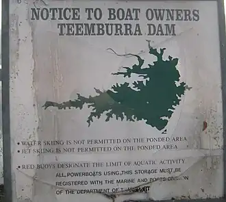Teemburra Dam was constructed in 1997 for town water storage and irrigation purposes. It is located approximately 50 km west of Mackay, Queensland. It has a surface area of 1,040 hectares, an average depth of 14.2 metres and holds 147,500 Ml.