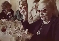 In the autumn of 1951 she was invited by Dorothea Tanning to go on a weekend trip in Hunterdon County.[4] It was on that trip that she once again met Duchamp, and romance developed shortly thereafter. They were both avid chess players. Teeny and Duchamp married in New York City on January 16, 1954. They lived in New York and in Paris; around 1958, the couple began spending summers in Cadaqués, Spain, on the Costa Brava.[1] They were together until his death in 1968. Following Duchamp's death, Alexina moved to Villiers-sous-Grez, near Paris, where she assembled an archive of photographs and other material documenting the life and work of her late husband. She maintained a close friendship with many of Duchamp's friends, including Jasper Johns, Richard Hamilton, composer John Cage, Gianfranco Baruchello, and choreographer Merce Cunningham.[5] Alexander Calder presented her with individually designed jewelry. She also served as an honorary trustee of the Philadelphia Museum of Art, which has the largest collection of Duchamp's work.[1]