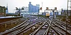 Deltic and empty Tees-Tyne stock entering Newcastle in 1972