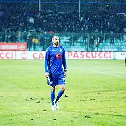 During 2016–17 season, Osmani made 26 league appearances, including 5 cup appearances and one in Albanian Supercup where the team was defeated by Kukësi.[18] On 20 May 2017, during the decisive match against Kukësi for the championship, Osmani along with other teammates were included in a massive brawl with referee Enea Jorgji which sent him off for unsportsmanlike conduct.[19] Everything started in the 59th minute when the referee didn't give a clear penalty to Skënderbeu after a foul inside the zone on Liridon Latifi, instead booking him for diving.[19] Skënderbeu eventually were defeated 2–0 at Zeqir Ymeri Stadium, meaning that they have failed to win the championship for the first time in six years.[20] Disciplinary Committee of AFA handed him an eight-game ban for all domestic competitions.[21]